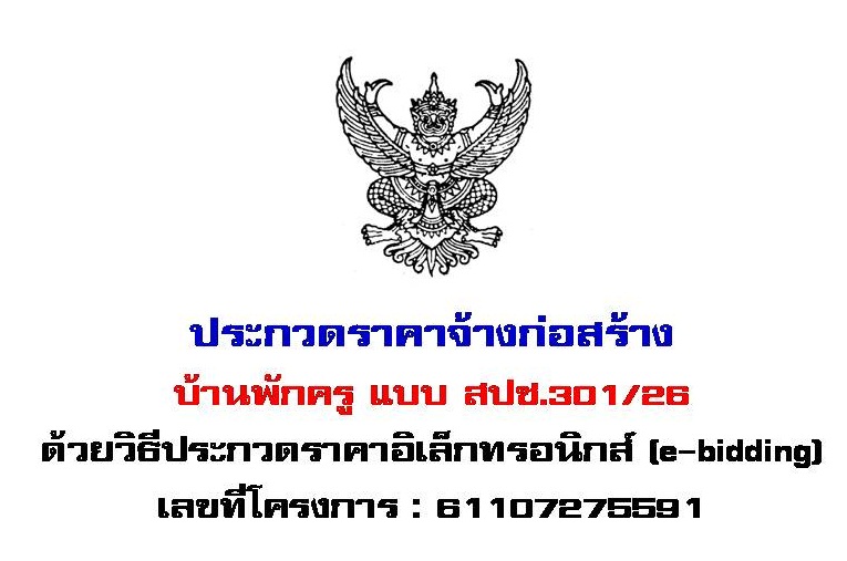 | เรื่อง ประกวดราคาจ้างก่อสร้างก่อสร้างบ้านพักครู สปช. ๓๐๑/๒๖ ด้วยวิธีประกวดราคาอิเล็กทรอนิกส์ (e-bidding) | |